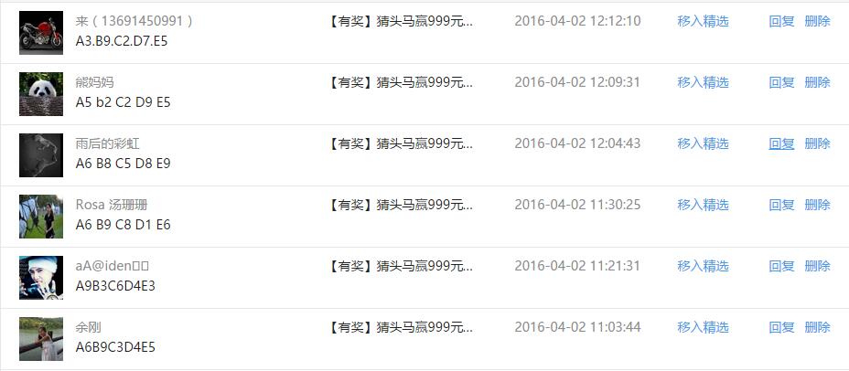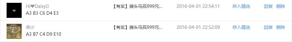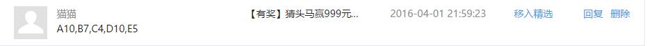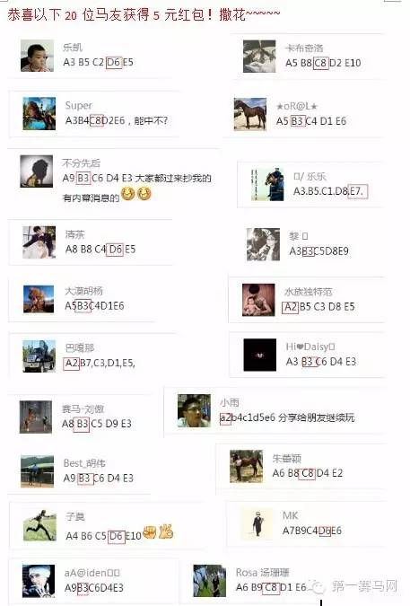 小编在这里不得不提醒参与活动的马友,一定要看清楚我们的活动规则,格式一定要对哦,看以下这几位马友就真的太可惜啦,猜对了两个!为了公平起见,这个不能算数哦~~~(摸摸大,表桑心,运气这么好,下次再来嘛~)