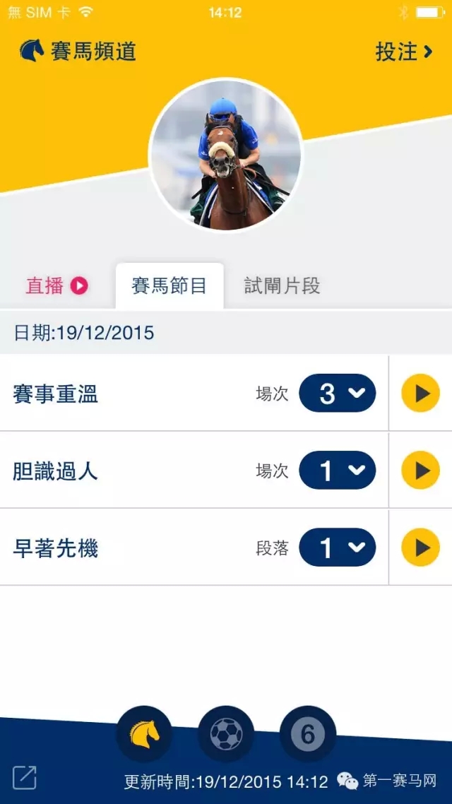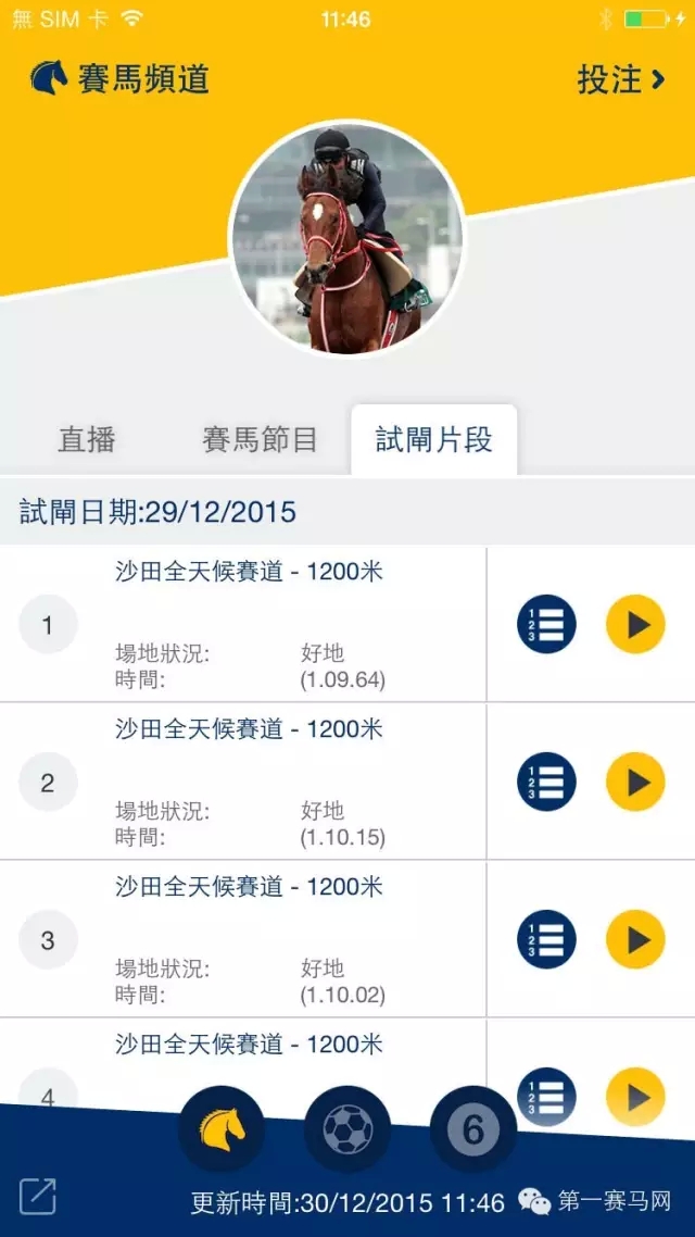 · 随时随地观看精彩赛马节目及最新试闸片段
