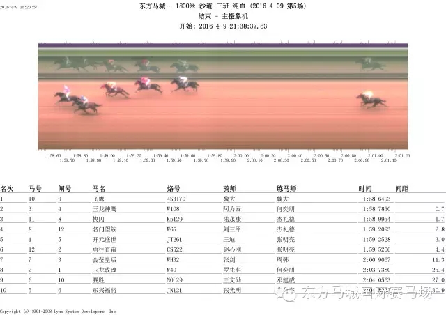 今日最后一战、长途赛事1800米三班赛,本场报名马匹数量最多且汇聚一众实力不俗的马匹。新晋加入的魏厩赛驹,张健马主旗下“飞鹰”击败一众赛前大热门马,以一分五八秒六四折桂,骑师阿力泰策骑“玉龙神鹰”屈居第二,“快闪”位列第三。