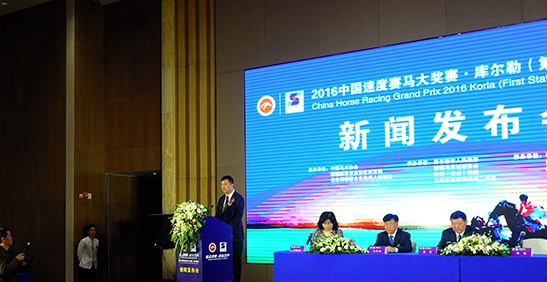 据第一赛马网获悉, 昨日(4月19日),主题为“策马奔腾·美在巴州”的2016中国速度赛马大奖赛第一站新闻发布会在新疆乌鲁木齐市举行。会上宣布,2016中国速度赛马大奖赛首站将于5月21日至22日在新疆库尔勒市赛马场举行。届时,来自全国各地30余个马术俱乐部的250余匹赛驹,将在此同场竞逐总金额高达100万元的大赛奖金。