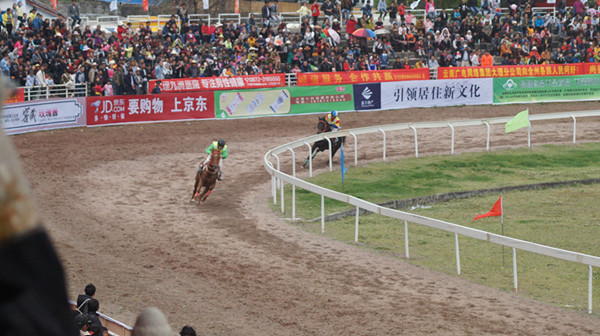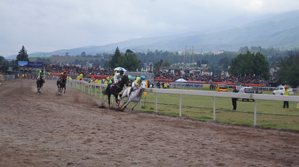 第一赛马网特派云南大理采编王颖报道 今天(4月23日),2016年云南三月街赛马日赛事进行到了第三天,赛事日程包括::11:30—12:00进行的马术表演,以及12:00—16:30进行的混合组1000米速度赛马、民族组5000米速度赛马和民族组跑马射箭。