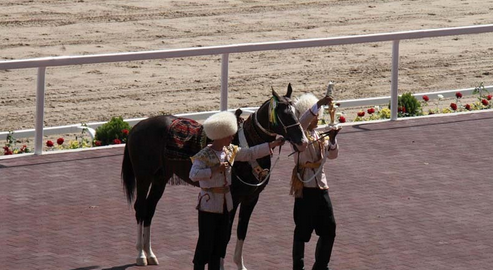 据第一赛马网获悉,土库曼斯坦庆祝年度阿哈尔捷金马(中国称汗血马)节,昨日(4月24日)在阿什哈巴德国际综合赛马场举行了总统杯赛马大奖赛。