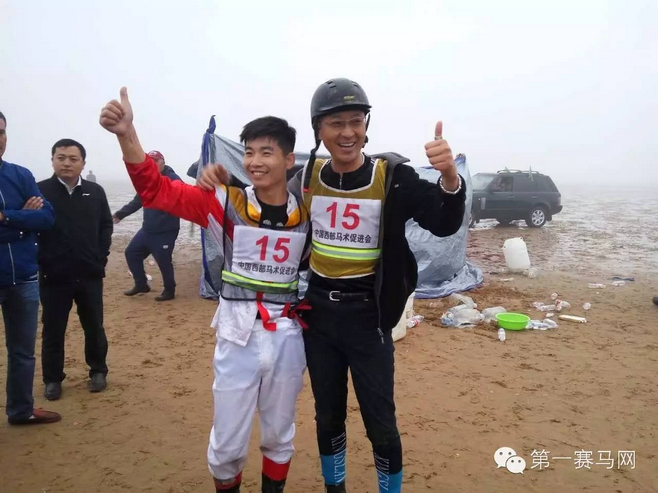 (第一赛马网青岛报道 )今天(5月2日),由中国西部马术促进会(以下简称“西促会”)主办的“第五届30公里全国名人马主大赛”在青岛田横海滩举行,37匹赛驹奋力争先,最终共有30匹赛驹完成全程比赛。但令人意外的是,赛事前三名都由纯血赛驹包揽,打破纯血马短途优胜,难跑长途的魔咒。