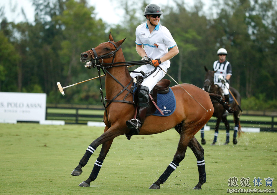 哈里王子上阵马球赛 英姿飒爽不忘耍宝