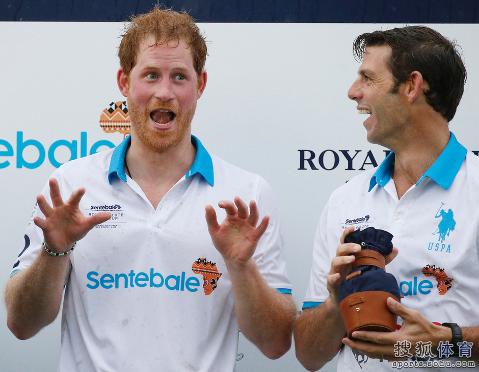 当地时间2016年5月4日,美国威灵顿,英国哈里王子出席他自己创办的Sentebale皇家礼炮马球杯马球赛,亲自上阵打球,英姿飒爽,还不忘和好友搞怪。