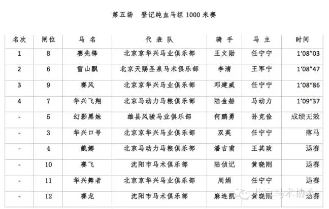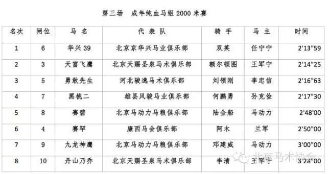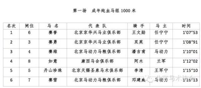 2016北京马协第一站各组别成绩