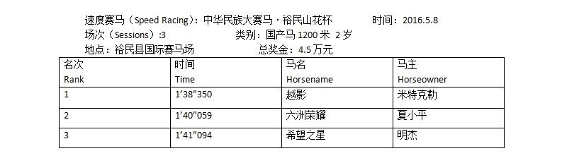 中华民族大赛马·裕民山花杯国产马1200米赛事赛果如下↓↓↓