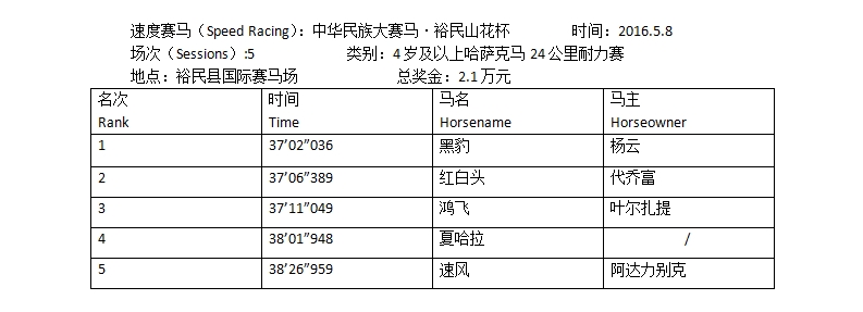 中华民族大赛马·裕民山花杯4岁及以上哈萨克马24公里耐力赛事赛果如下↓↓↓