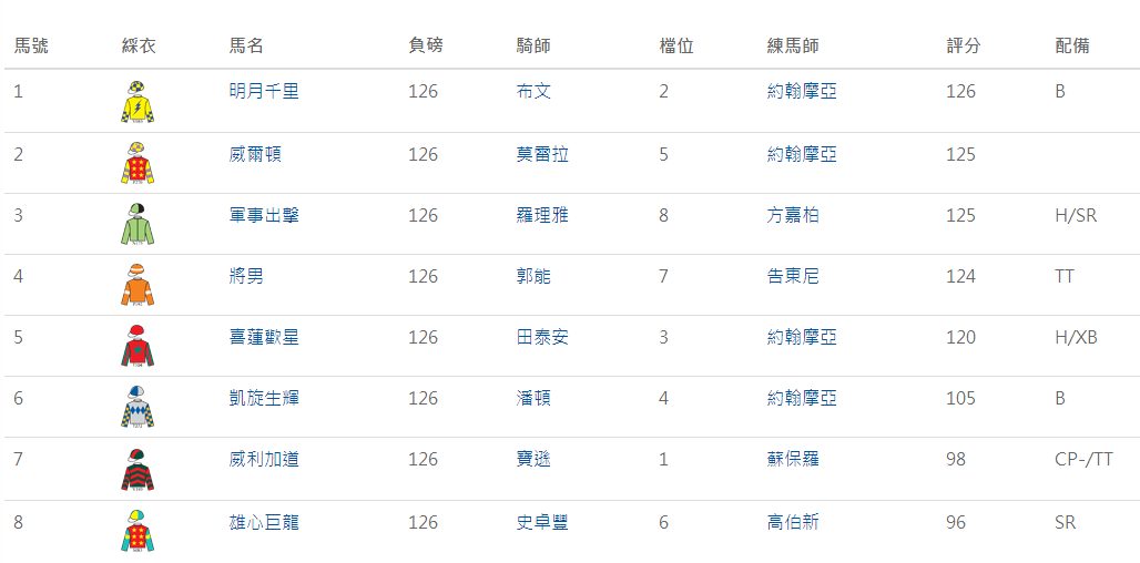 2016渣打冠军暨遮打杯马匹排位表出炉