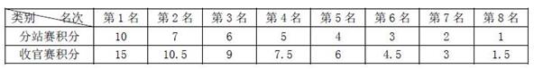 4. 每站比赛的各级别取前8名进行积分,具体积分分值如下:
