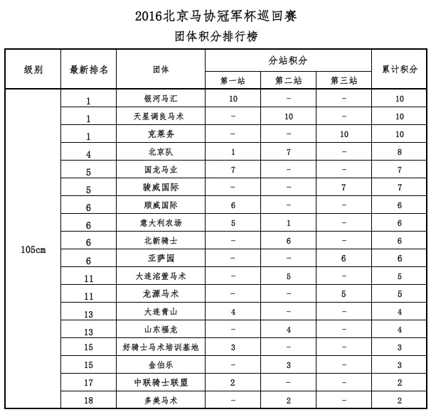 在105CM级别中,共有18个团体获得积分,并跻身团体排名榜单: