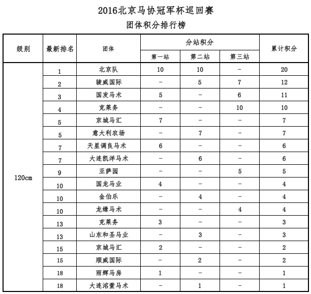 在120CM级别中,共有18个团体代表队获得积分,跻身团体排名榜单: