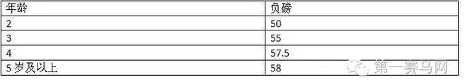 1. 所有上述赛事参赛马匹均采取分龄负磅(同龄段雌马获2公斤让磅)