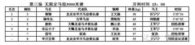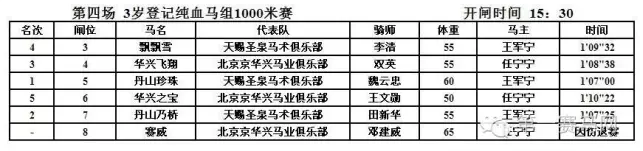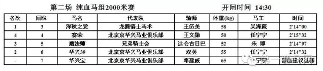 此日共有四场赛事,一场附加赛——马主赛(5000M)。今日赛果出炉,天赐圣泉马术俱乐部与北京京华兴马业俱乐部你争我夺不相上下,想知道是怎么回事?看看赛果便知!