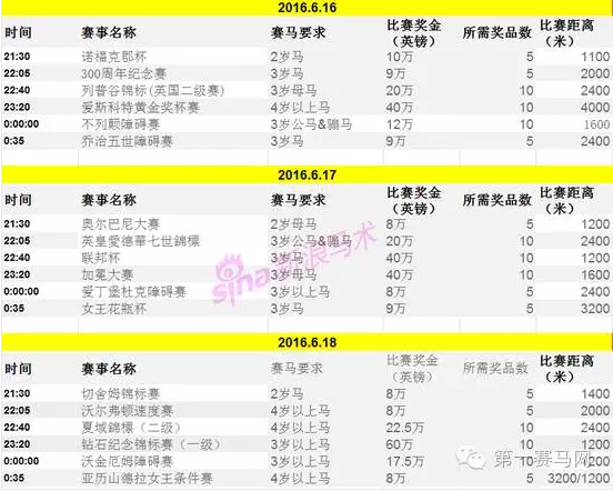 (备注:本赛程表由第一赛马网合作伙伴新浪马术提供)