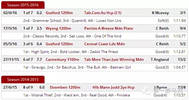 上个月(2016年5月17日),“彩虹国度”在澳大利亚怀昂赛马场(Wyong Racecourse)举行的一场1200米赛事(Paries-A-Breeze Mdn Plate)中,击败其余六位对手夺得海外赛场第一冠。