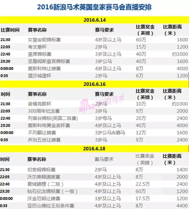 6月14日-18日,万众期待的2016英国皇家雅士谷赛马嘉年华即将华丽登场。无法去英国亲临现场看全球顶尖赛驹和骑师?没有关系,第一赛马网的合作伙伴新浪马术将进行网络直播,同时第一赛马网也将在网站首页提供直播通道,为马迷奉上直播盛宴,一网打尽雅士谷嘉年华18场赛事,让您与全世界马迷一起同步感受英伦范的速度与激情。