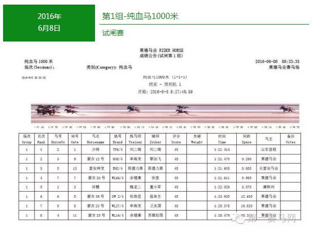 46匹骏马6组赛事……莱德常规赛1000米试闸赛成绩出炉!