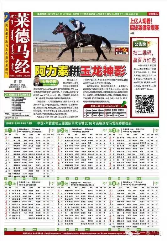 这份名为《莱德马经》的读物由内蒙古莱德马业集团董事长兼总裁郎林命名,由莱德马业主办,第一赛马网团队编辑设计,共计8个版,是目前内地最专业的马主会员参考资料。