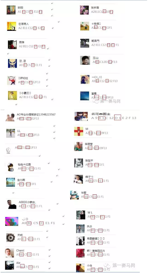 第2至6场赛事分别用ABCDEF表示,选择的每场胜出人马组合以赛事排位表的马号表示。