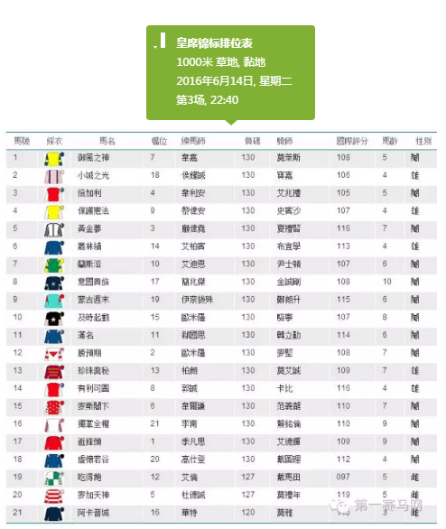 据第一赛马网获悉,皇席锦标赛马日各场赛事的最后宣布出赛马匹名单及排位,已于今日(6月13日)早上公布。