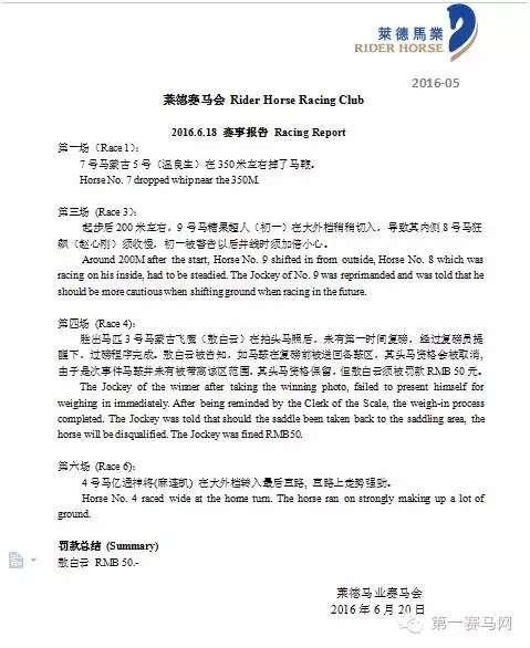 和上次赛事报告罚款三人相比,本次报告仅罚款骑师敖白云一人,且被罚原因是未能第一时间复磅,别以为是个小问题,险些丢了第四场头马资格!具体情况,来看报告!