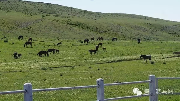 在天山北麓,两河之间,五月正是牧草青翠的时候,在近百亩的草场里,近百匹母马各自带着它们半岁左右的小马在草地上徜徉、慢跑,享受着天山下肥美的牧草和清甜的雪山融水……这些母马大多有160的身高,小马驹的身体曲线都已与纯血马驹相近,四肢修长、曲线柔和纤细、前胸开阔。