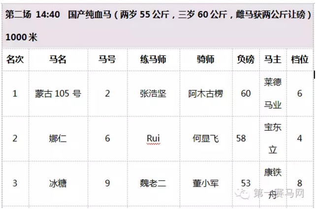 国产纯血马(两岁55公斤,三岁60公斤,雌马获两公斤让磅)1000米