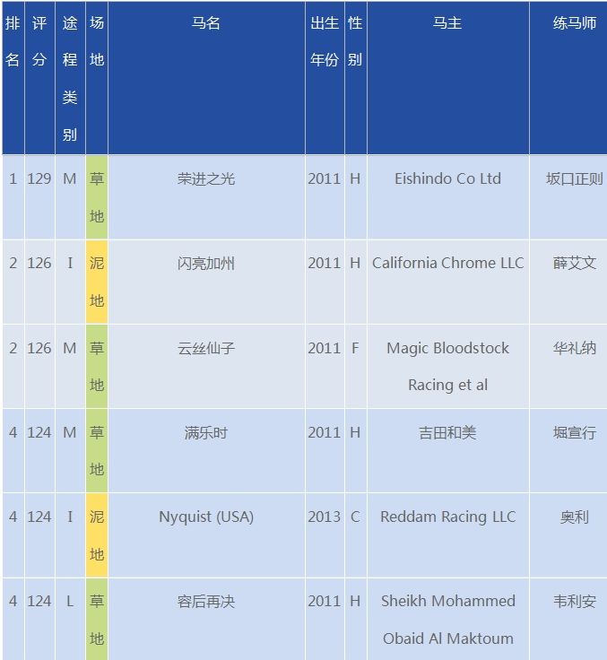此排名乃国际马坛评审赛驹表现的最终标准,令热爱赛马事业的各界人士皆能及时洞悉马坛脉搏。下次排名将于2016年7月14日公布,敬请期待。