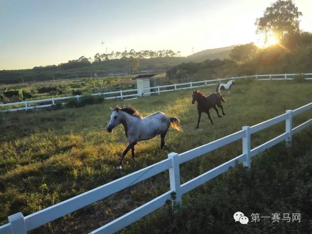 位于中山市的香山马会,夕阳西下,马儿在嬉戏追逐。