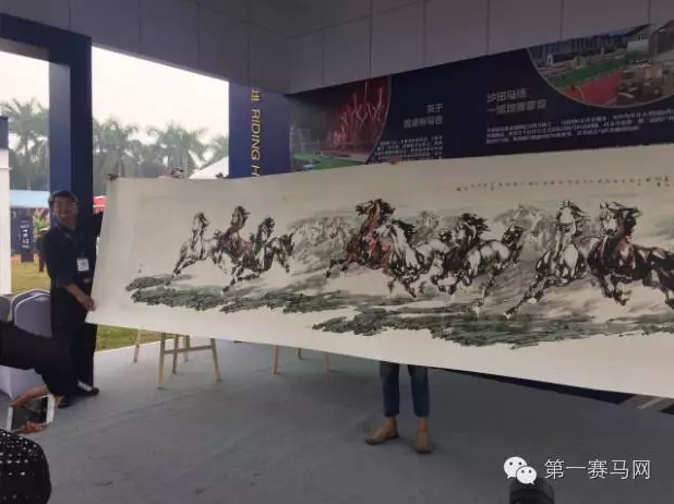 中国国家画院研究员、国家一级美术师吴迅老师除了现场作画,还亲切地和现场马友互动,为马友讲解自己的水墨作品。他告诉第一赛马网,中国有很多爱马、画马的名家,大家集合在一起交流,交流自己爱马的感情,交流自己的画马的经历和经验。“1990年中国农历马年的时候,我们组织了一帮人在新加坡开了一个关于马的画展,受到很多人的追捧。这次借助中马协和香港赛马会在广州办赛的机会,能够现场作画感到十分荣幸。香港作为世界知名的赛马之都,我希望能尽快在香港马会的帮助下,和我那些爱马的朋友,为推动马文化的推广和交流作出自己的贡献。”