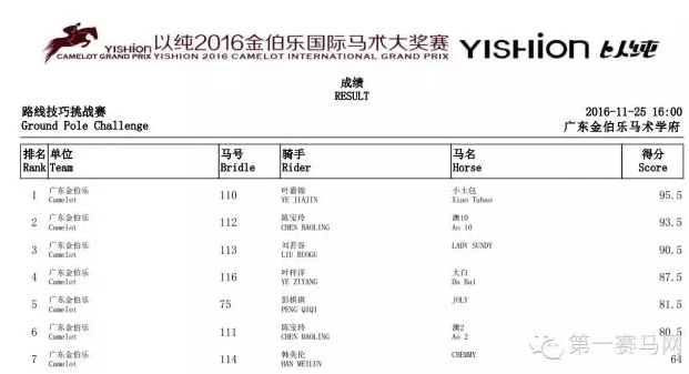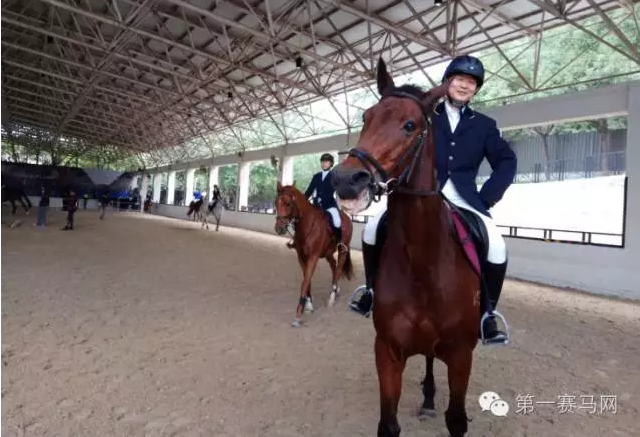马蹄扬起,越过障碍栏杆,骑手用力蹬着马镫,向前倾着身体,仿佛和赛马连成一体……马身已越过栏杆,在后蹄即将越过栏杆的时候,下落的速度稍显快了一些,“当”的一声,马蹄上的蹄铁踢在栏杆上,场边观众惊呼起来,所幸栏杆只是稍微晃荡了一下,并没有掉下来,比赛继续。这一幕发生在今天东莞金伯乐“以纯2016金伯乐国际马术大奖赛”上。当天共举行了三场比赛,一场赛前热身。在被誉为国内最好的室外场地里,来自全国各地的骑手们顺利完成各自比赛,第一天的赛事圆满结束。