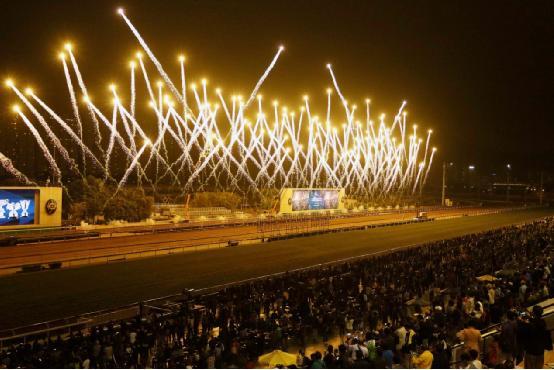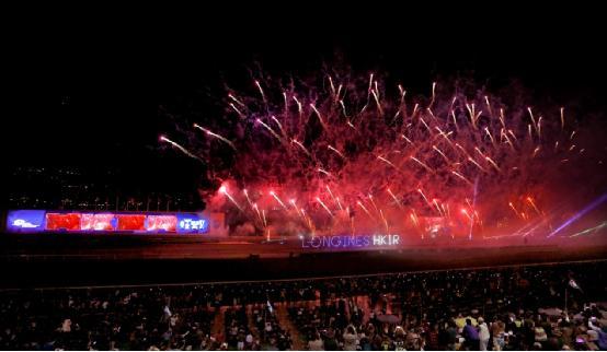 全日赛事过后,沙田马场上空发放璀璨烟火,为浪琴表香港国际赛事画上完美句号。