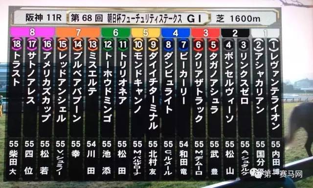 第一赛马网驻日联络员杨舒、井关敦子报道 北京时间今日(12月18日)下午2:40(日本时间 15:40),朝日杯フューチュリティステークス(GI)在阪神赛马场盛大开幕。本场共有18匹战驹在1600米草地赛上展开激烈角逐,骑师四位洋文策骑17号马サトノアレスSatono Ares(JPN)耗时1分35秒4以一个马头的优势夺得榜首。