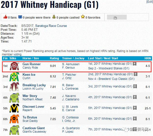 2017/08/07 惠特尼锦标The Whitney Stakes(G1) 泥地1800米 第一名