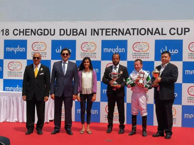 2018第五届“成都·迪拜国际杯—温江·迈丹赛马经典赛”由成都市人民政府、阿联酋国家赛马管理署联合主办,成都市体育局、成都市温江区人民政府、迪拜迈丹集团和中国广厦建设集团共同承办,四川省归国华侨联合会与中国马业协会共同支持,成都盛强马术运动有限公司执行,浪琴、AZIZI、戴尔联合赞助的世界级赛事。该赛事发轫于2014年,赛事合作为期5年。