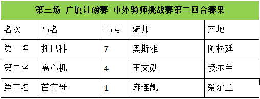 第三场是今天最后一场有中国骑师参与的赛事,五名中国骑师与5名外籍骑师将在1600米距离中,争夺“广厦让磅赛”的冠军归属,中国骑师能否翻盘就看本场比赛,因此也备受现场马迷和媒体的关注。