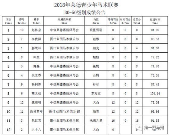 2018年莱德青少年马术联赛赛果