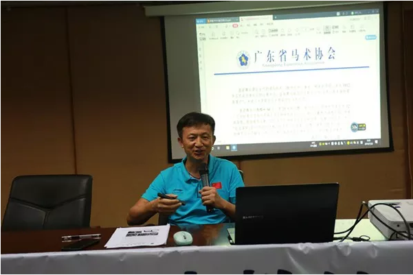 很荣幸的是,本次培训邀请到了中国马术运动员,广东马术队副教练兼盛装舞步骑手,荣获多届全国盛装舞步冠军顾兵担任此次培训讲师。根据培训安排,本次培训主要分两天进行。第一天是盛装舞步理论知识的学习,第二天则是盛装舞步的实践课以及理论考试。