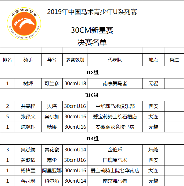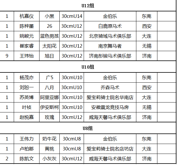 2019年中国马术青少年U系列赛决赛名单(前五站)