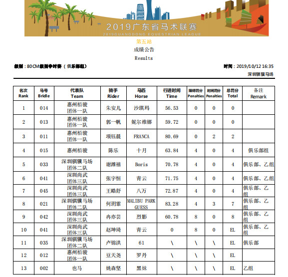 第一赛马网特派深圳采编报道 10月12日, 由香港赛马会赞助,广东省马术协会主办的2019年广东省马术联赛第五站(深圳骐骥站)暨2019年深圳市青少年马术队选拔赛拉开战幕。