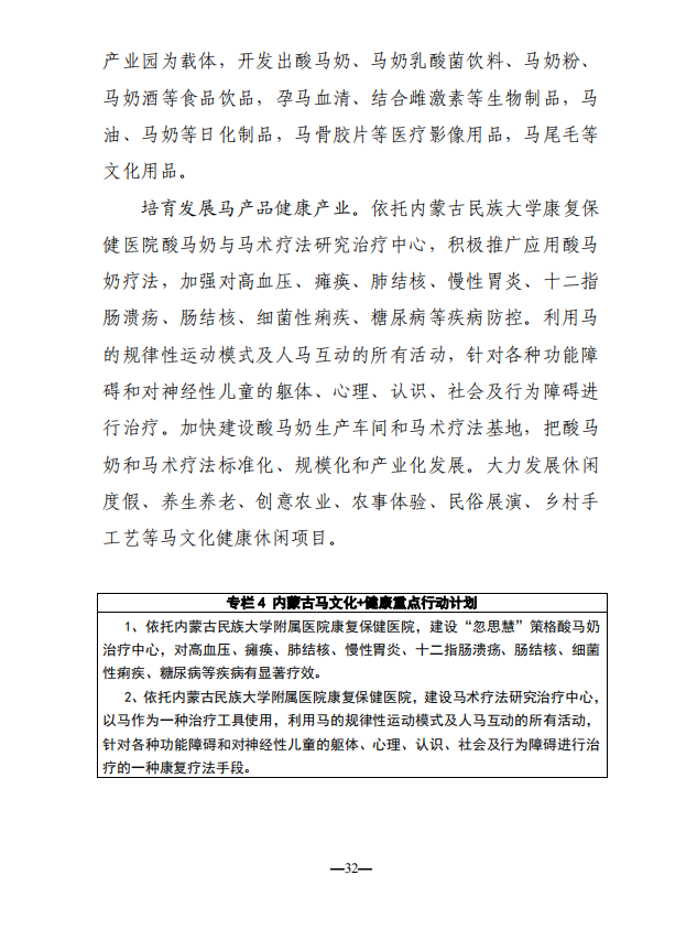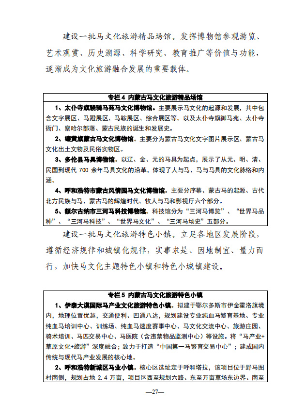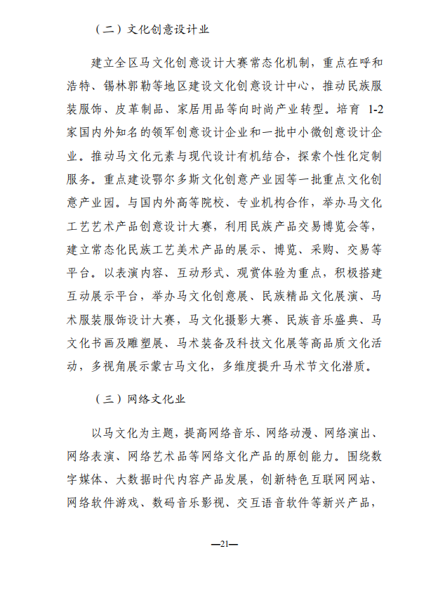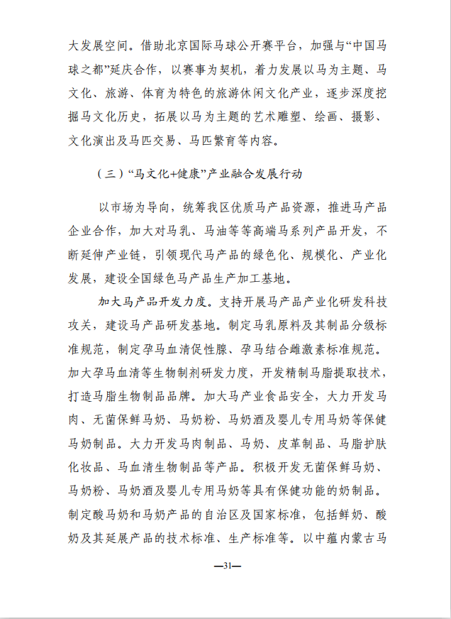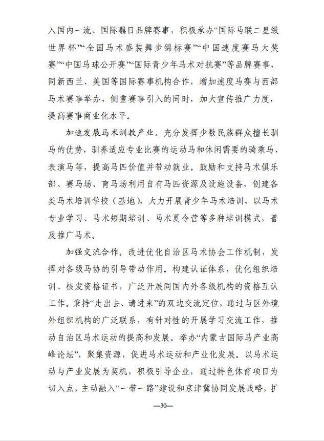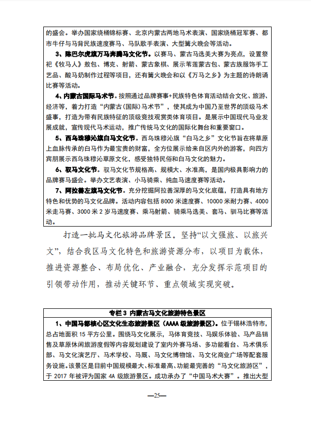 编者按:早在2017年内蒙古自治区人民政府发布《关于促进现代马产业发展的若干意见》,两年后内蒙古自治区党委宣传部刚刚又发布《内蒙古自治区马文化产业发展规划(2018-2022年)征求意见稿》,对原来的若干意见进一步升级,全面推动区内产业的快速发展,为全国立了一个标杆。