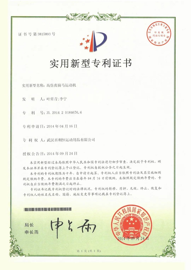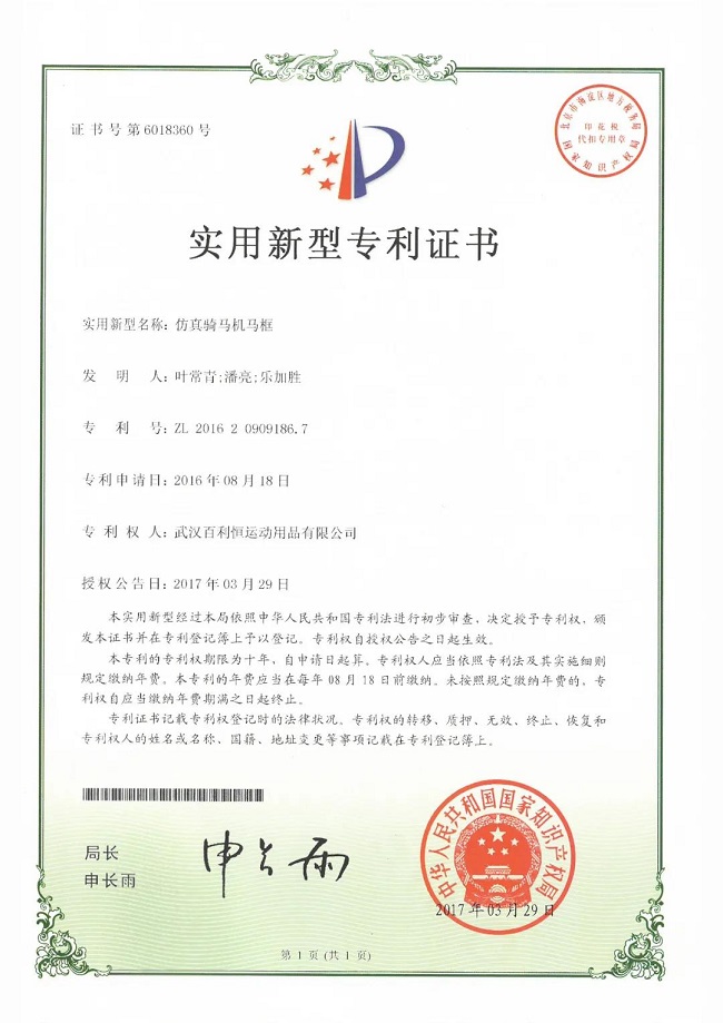 百利恒马术训练器产品,拥有数项国内外专利,通过了国家体育用品质量监督检验中心检测,由国家体育总局体育重点工作实验室立项研究。