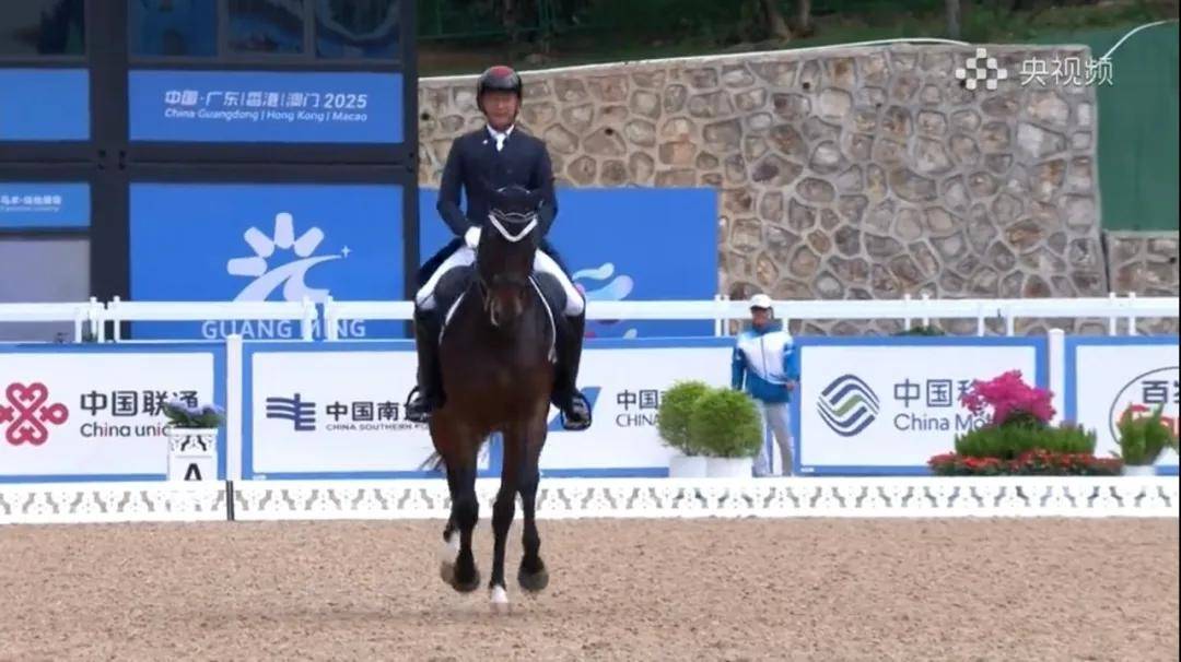 图:广东队骑手黄焯钦与“卡斯坦”比赛现场,来自央视频截图
