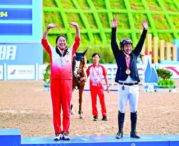 这是他职业生涯的第十块全运会金牌,四届全运会斩获三届个人冠军,堪称中国马术三项赛的“传奇骑手”。“每次都是最后一个出场,压力肯定有,但我只专注当下的一两分钟。”梁锐基分享夺冠秘诀,比赛前会通过玩游戏、看剧转移注意力,避免过度思考夺冠结果。谈及搭档的马匹,他满是疼惜:“它今天有点累,几次擦杆有惊无险,以前从来不会碰杆的。”尽管过程有惊,但马匹的稳定发挥仍是夺冠关键。