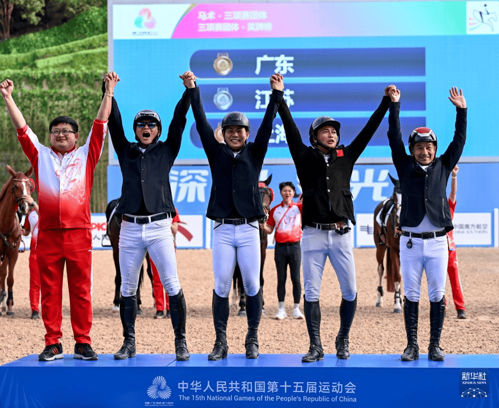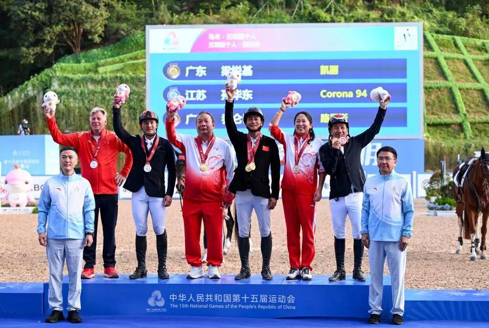 11月15日,深圳市光明国际马术中心第十五届全运会马术项目三项收官之战战况胶着,主场作战的广东队与江苏队上演巅峰对决,最终以99.5分的总罚分与江苏队同分,凭借同分规则优势斩成功斩获团体冠军,队中名将梁锐基与队友乔仑巴特更分别摘得个人赛金牌与铜牌,实现团体与个人登顶,超额实现了本届全运会重夺广东马术三项赛荣耀承诺。