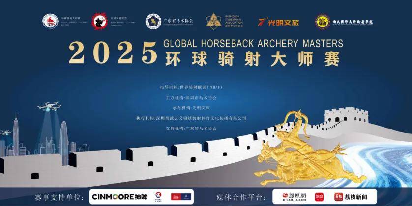 2025环球骑射大师赛由世界骑射联盟(WHAF)指导,深圳市马术协会主办,光明文旅承办,深圳尚武云义锦绣骑射体育文化传播有限公司执行,得到广东省马术协会支持。