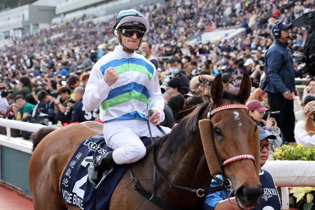 由姚本辉训练的“遨游气泡”在潘顿胯下成功卫冕浪琴香港一哩锦标