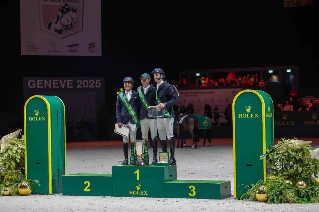 第一赛马网获悉,当地时间周五晚上9点,本赛季全球排名前十大骑手在日内瓦国际会议中心上演了一场激动人心的比赛,最终英国骑手斯科特·布拉什策骑“Hello Chadora Lady ”登上最高领奖台,卫冕冠军美国骑手肯特?法灵顿与 “Toulaune ” 获得亚军,德国骑手理查德?沃格尔与 “Cloudio” 则位列第三,跻身劳力士IJRC十强决赛领奖台。该项比赛总奖金高达53万欧元(约439万人民币)。