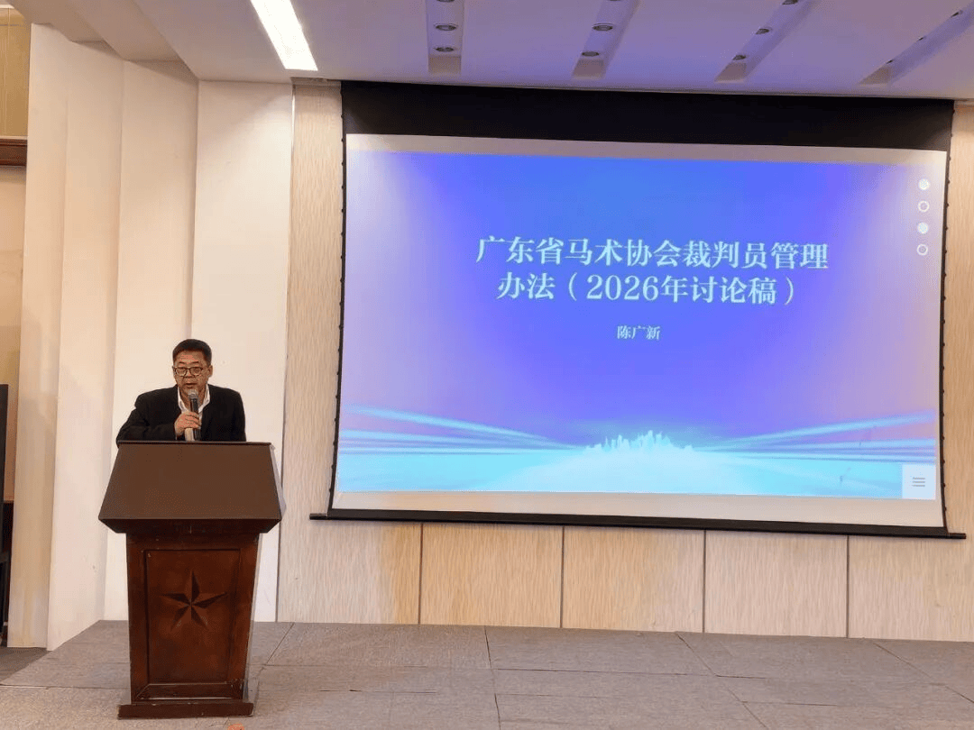 会议伊始,广东省马术协会常务副会长陈广新回顾了2025年广东省马术竞赛与裁判工作成果。他表示,经过8年的工作和赛事实践,广东省马术协会竞赛工作卓有成效地促进了广东马术事业朝气蓬勃,井喷式发展。广东省马术俱乐部从最初的全省10余家发展到现今的50多家,95%成为省马协的副会长单位,70余座马术场,马术人口达到20余万,热爱赛马运动的人数在不断增加,强有力地推动了马术运动的普及与发展,使广东省马术事业的发展始终走在全国的前列。